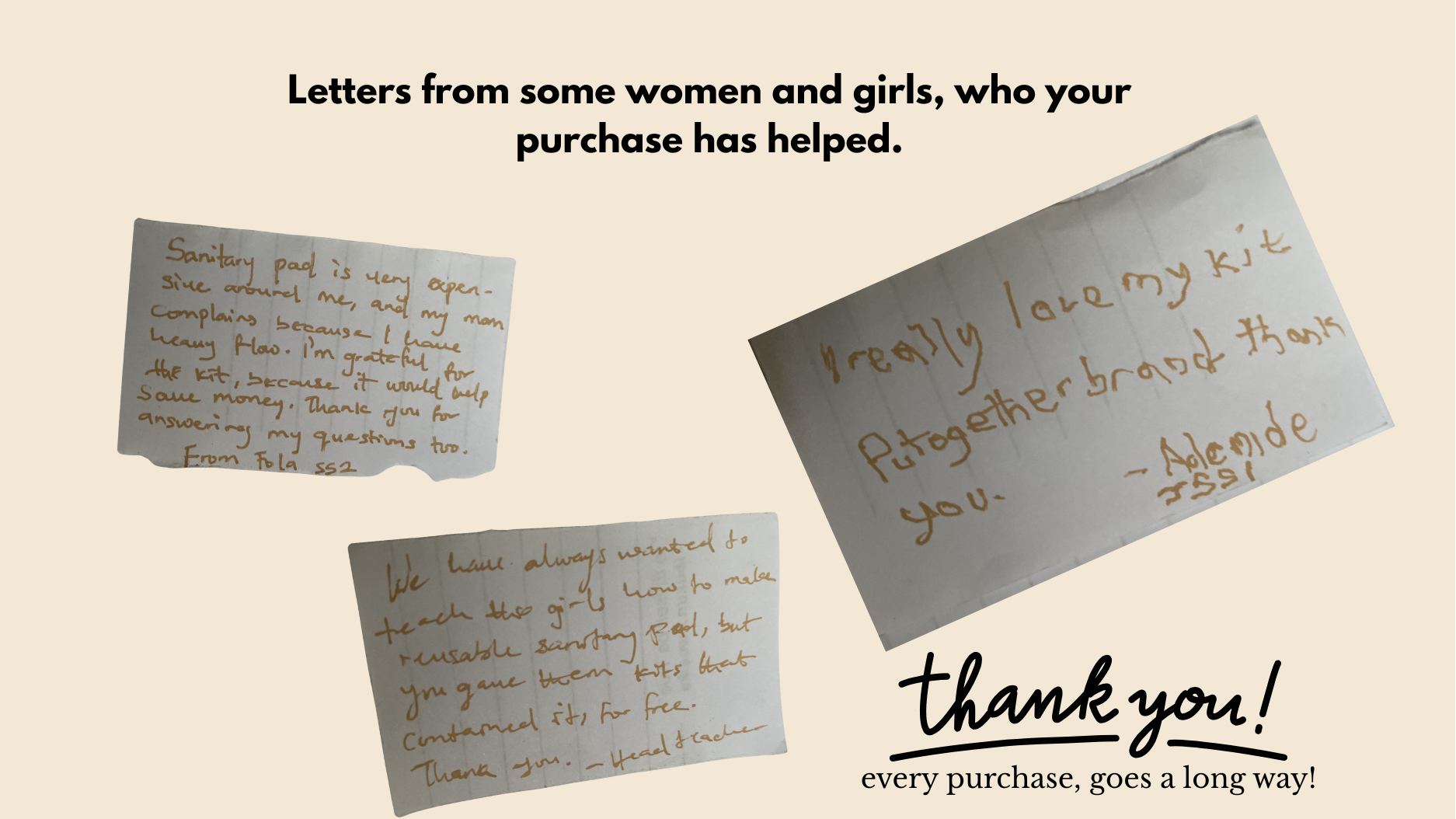 So 10% of every purchase goes into outreach— supporting women and girls with essentials like sanitary products, clothing, healthcare and everyday support.